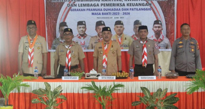 M-Galeri, Pohuwato – Ketua Kwartir Cabang (Kwarcab) Pohuwato Nasir Giasi resmi melantik Kwartir Ranting (Kwaran) Duhiadaa dan Patilanggio, di aula Kantor Camat Patilanggio, Jum’at 09/06/2023.